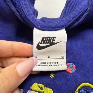 Vibrant blue sweatshirt with colorful Nike graphic. Perfect for everyday comfort.