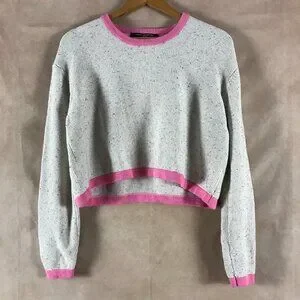 FRENCH CONNECTION Speckled Cotton Cropped Sweater LARGE