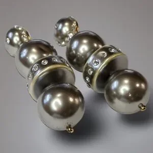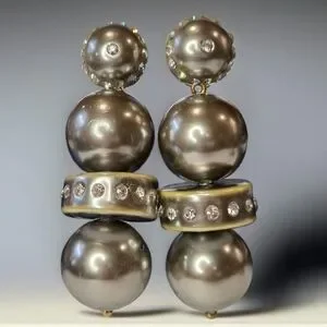 Unique & Fabulous Lele Sadoughi Chunky Silver Ball Distressed Dangle Earrings with Sparkling zircon Crystals