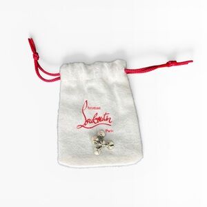 Fashion-forward high-top sneakers by Christian Louboutin. Leather and textured fabric upper with white laces. Silver spike-studded toe cap for bold detail. Cushioned collar and flat rubber sole. Signature edgy luxury style.