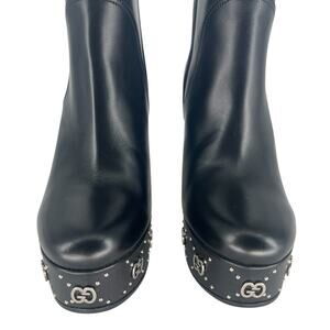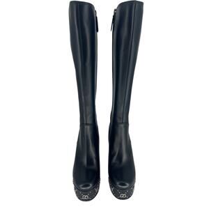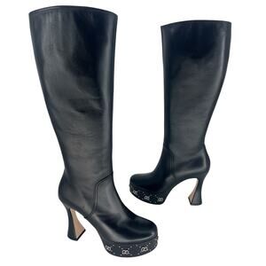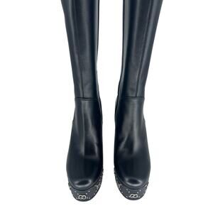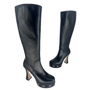 Gucci Black Janaya Platform GG Studded Tall Knee High Boot