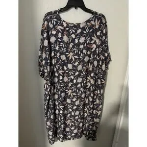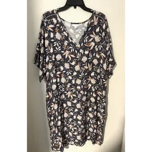 J. Jill Pure Jill Gray & Blush Pink Floral V-Neck Short Sleeve Shift Dress XL