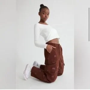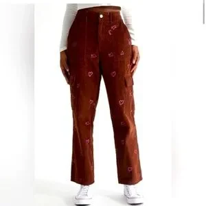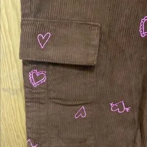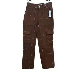 PacSun Brown Cargo Pants with Pink Heart Accents