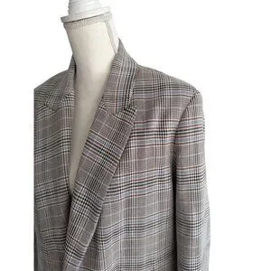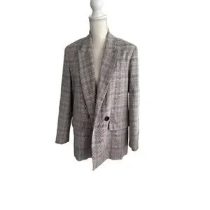 ZARA Women’s Gray Blue Plaid Oversized Blazer Jacket Size Medium