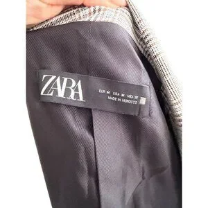 Elevate your wardrobe with this chic Zara oversized blazer. Featuring a stylish gray-blue plaid design, it's perfect for adding a touch of sophistication to any outfit. Ideal for both casual and formal occasions.