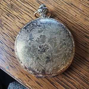 Vintage Max Factor pocket watch style powder compact gold tone floral