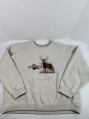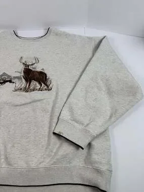 Croft & Barrow Embroidered Deer Wildlife Crewneck Sweatshirt Gray Men's XL