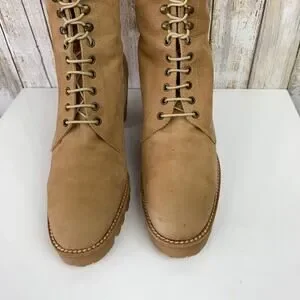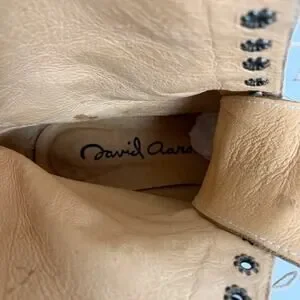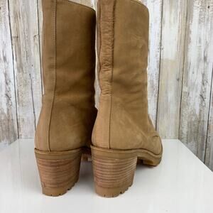 David Aaron Mid Calf Tan Nubuck Leather Lace Up Eyelet Heeled Boots 7 M Spain