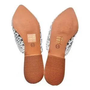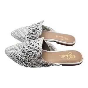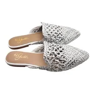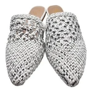 42 Gold Corra Pointed Toe Weaved Leather Slip On Mules Size 5.5