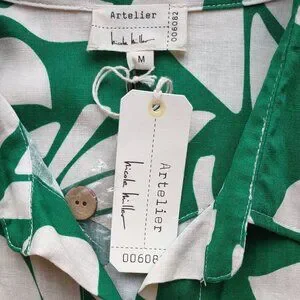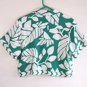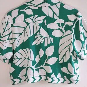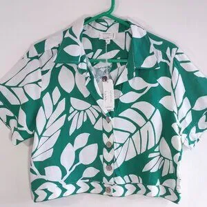 NWT Nicole Miller Linen Shirt Crop Jacket Tropical Button-Up Short Sleeve Size M
