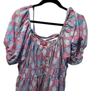 Simply southern pink blue seashells shells preppy beach spring summer dress xl