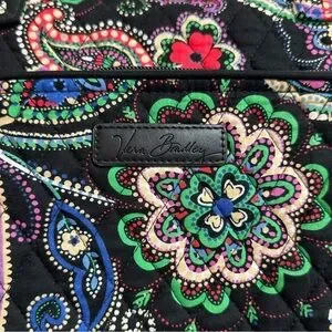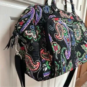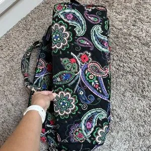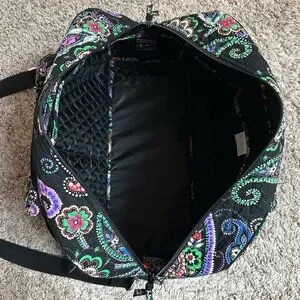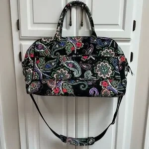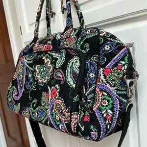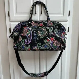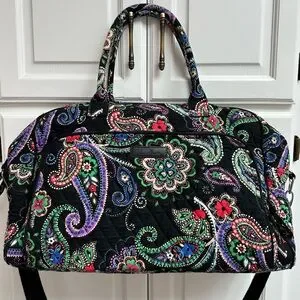 Retired print! Vera Bradley Grand Weekender Travel Bag in Kiev Paisley. Black with red, blue, green, pink and purple paisley floral print. In excellent preowned condition.