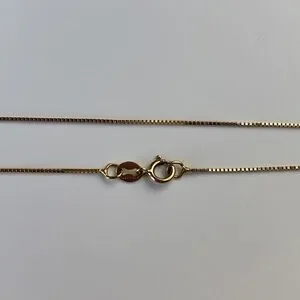 Sleek gold box chain. Perfect for layering or solo wear. Adds elegance to any look.