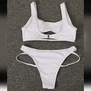 Rib-Knit Round Neck Bikini Sets, Cut Out High Cut High-Stretch Two Pieces Swimsuit, Women's Swimwear & Clothing