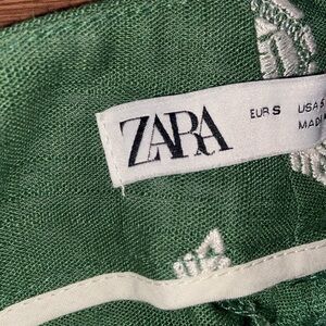 ZARA Linen Blend High Waisted Wide Leg Embroidered Culotte Pants