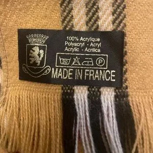 NWOT Made in France Plaid Scarf Tan, red, black, white with fringe