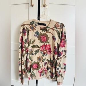 Lauren Ralph Lauren Multicolor Floral Long Sleeve Sweater Size Medium Cotton