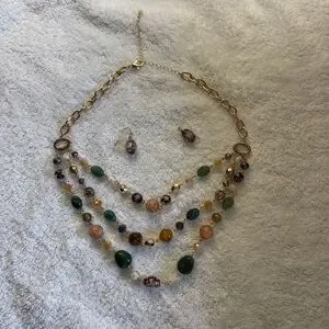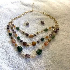 Studio 1886 Bohemian Multi-Strand Gemstone Statement Necklace Gold With Earrings