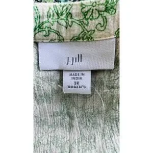Perfect for casual outings or dressed-up occasions, this J.Jill tunic top is a versatile addition to your closet. Pair it with your favorite jeans or leggings for an effortlessly chic look.Lightweight and breezy crinkle cotton tunic by J.Jill in a 3X. Boho floral print with an earthy green palette, contrasting border hem, and fringe tassels. Flowy fit perfect for warm weather, cottagecore, resort wear, or relaxed weekend vibes.