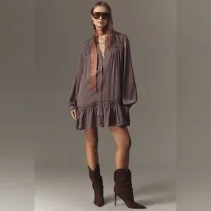 Pilcro Long-Sleeve V-Neck Mini Shirt Dress in Shark