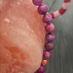 Studio Barse Purple and Coral Beaded Necklace with Marbled Pendant