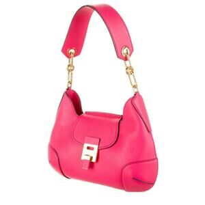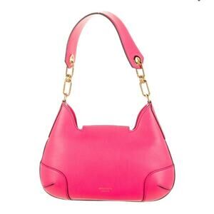 Crafted in Italy, this luxurious bag features gold-tone hardware, a 9.5" flat shoulder strap, tan suede interior lining, and a single zip pocket interior wall. The front flap fastens with flip-lock closure and comes complete with a dust bag. In a beautiful watermelon hue, this medium-sized shoulder bag measures 9" in height, 11.25" in width, and 3" in depth.