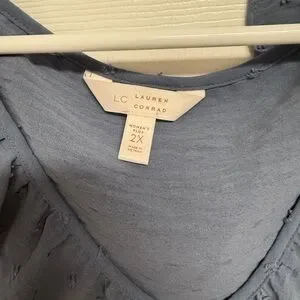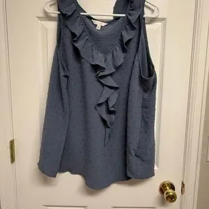 This elegant gray tank top by LC Lauren Conrad features a stylish ruffled design that adds a touch of sophistication. The sleeveless cut and flowy fabric ensure a comfortable fit, making it a versatile addition to any wardrobe.