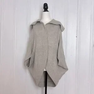 Light Beige Convertible Turtleneck Poncho Sweater/cardigan