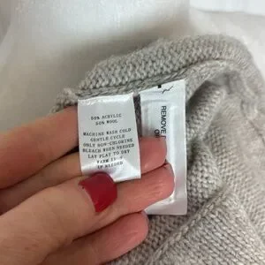 Crafted in a light beige color, this piece is made from a luxurious blend of wool and acrylic, ensuring both warmth and durability. The double-layered wool at the back provides extra comfort and structure, and the sweater is conveniently machine-washable.