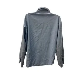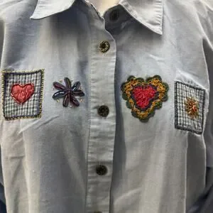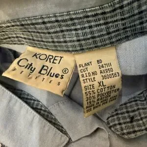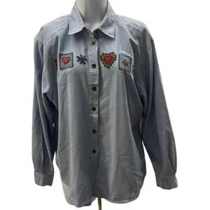 Vtg KORET CITY BLUES Petite Shirt Women XL Crochet Blue Denim Collared Button
