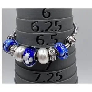 Blue Charm Bead Bracelet Silver Tone Adjustable 7–8.5" Rhinestone Accents