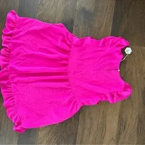 Vibrant pink dress with playful ruffles. Perfect for casual outings. Pinkblush Maternity Dress Hot Pink Size Medium New with tags!