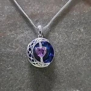 Sterling silver box chain necklace with amethyst heart and moon pendant jewelry