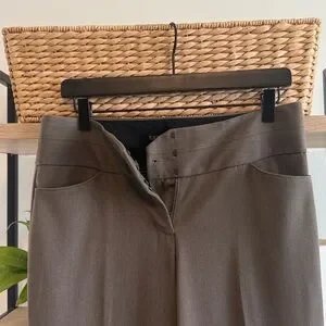 Express Editor Flare Leg Mid-Rise Taupe Brown Woven Career Dress Pant Trouser, 4