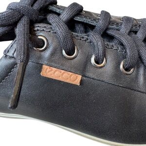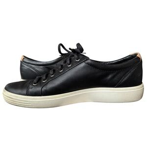 Black Soft sneakers from Ecco in a size 42, which translates to an 11-11.5. In good preowned condition; typical and expected signs of wear but lots of life left.