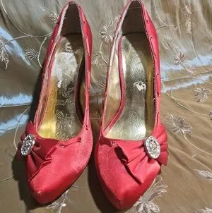 Step out in style with these elegant red satin heels. Perfect for any occasion, these shoes add a touch of sophistication to your outfit.