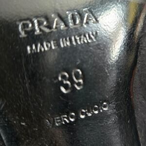 The leather insole and leather sole highlight the brand’s luxury craftsmanship, while the sculptural silhouette makes these pumps perfect for collectors, stylists, and anyone who loves bold, archival Prada design. Great condition with light scuffing throughout. Dust bag and box not included. A standout statement heel for Y2K outfits, evening looks, and fashion‑forward styling.