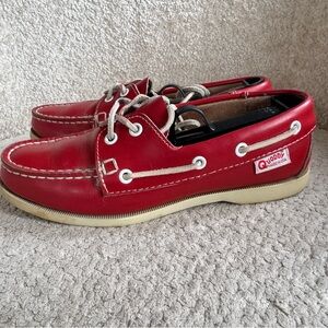 Quoddy Made In USA Red Leather Boat Shoes Womens 6.5 Handsewn Blucher Moc