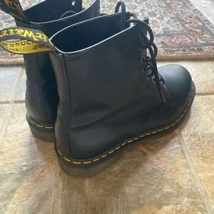 Dr. Martens Black Leather Boots with Yellow Stitching