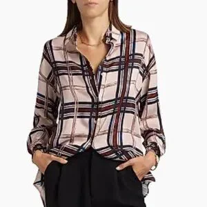 Showcasing a painterly plaid print, the Smooth Ex-Boyfriend shirt from Favorite Daughter is cut for a relaxed fit. A spread collar and button cuffs complete the look.