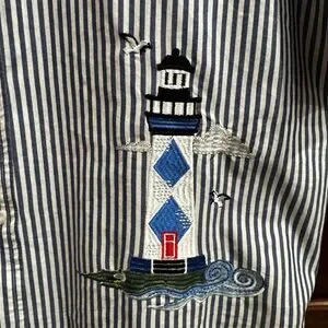 Vintage Blair Women’s Blue Striped Lighthouse Nautical Coastal Beach Top Sz L