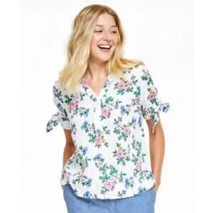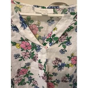 Linen Charter Club Luxury Floral Blouse Women's Size Large Pink Blue Cottagecore