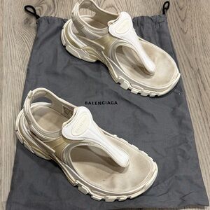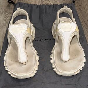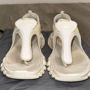Balenciaga sandals with sporty sole. Thong-style upper and cushioned footbed. Durable rubber outsole. Sleek minimalist design.