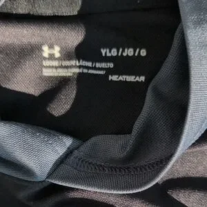 Under Armour hoodie, featuring a sleek black and blue design. Crafted from high-performance material, it offers a standard hood and the iconic logo on the chest, making it perfect for athletic activities or casual wear. In very good used condition