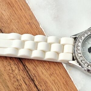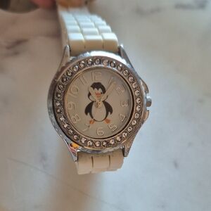 Charming watch featuring a penguin design. Accented with rhinestones. White rubber band . tested in working condition. doesn't come with battery