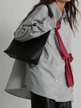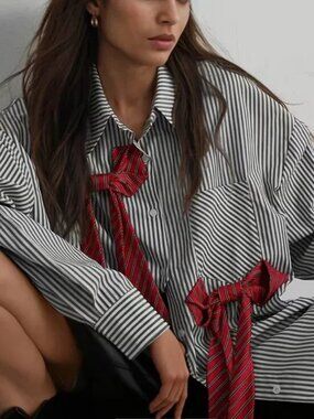 Loose-fit Boyfriend Style Striped Bow Shirt