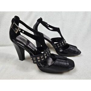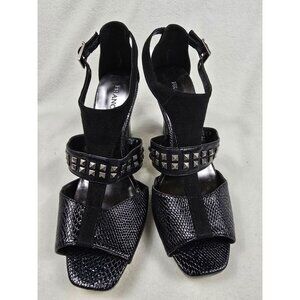 Franco Sarto Black Studded Leather Strappy Heels 8M
