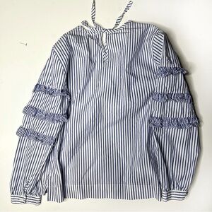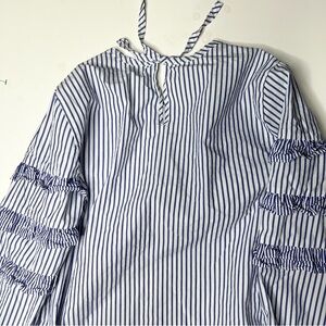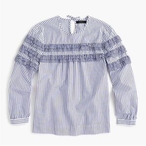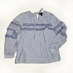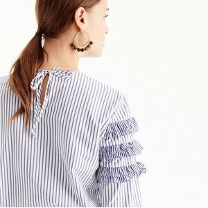 J.Crew Tiered Top Poplin in Mixed Stripes Brunswick Blue Ruffle Sleeves Size 10