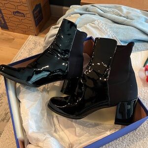 Stuart Weitzman Black Patent Leather Ankle Boots