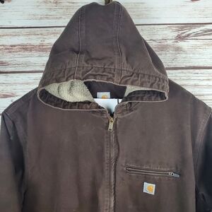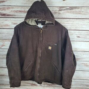 Carhartt Men's 3XL Brown Fleece Sherpa Lined Hooded Duck Canvas Jacket Coat